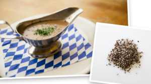 At our Haus black pepper is a main component of our mushroom gravy and sauerbraten gravy.