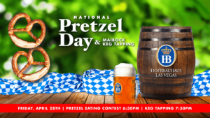 Friday, April 28th starting at 6:30PM Celebrate National Pretzel Day at our Haus with a celebrity pretzel eating contest followed by our traditional Maibock keg tapping.