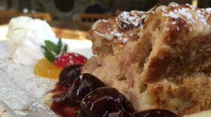 Wrap up a decadent meal with our bread pudding, served with vanilla ice cream, eggnog Anglaise, holiday spiced cherries and whipped cream.