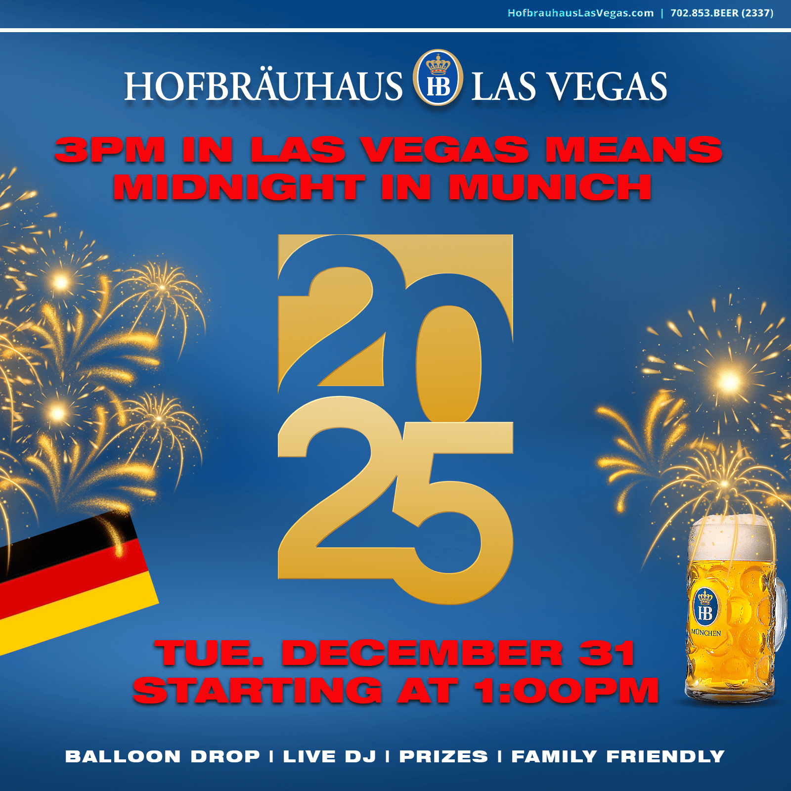 Come to our Haus and celebrate midnight in Munich, which is 3:00PM Las Vegas time, with us!