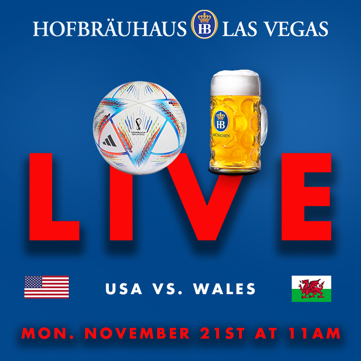 Catch all the action LIVE on giant screens for the World Cup 2022 game USA vs. Wales on Monday, November 21st. Doors open at 10:00AM, so make your reservation NOW!