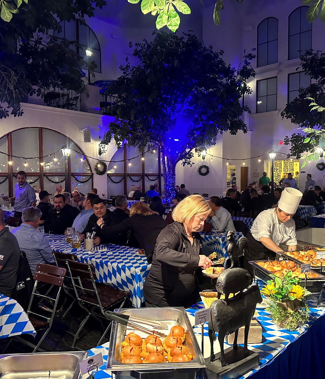 Our indoor Biergarten, with seating for up to 430 guests, has authentic patio seating, twinkling lights and a cascading fountain that set the mood and can be customized for any occasion.