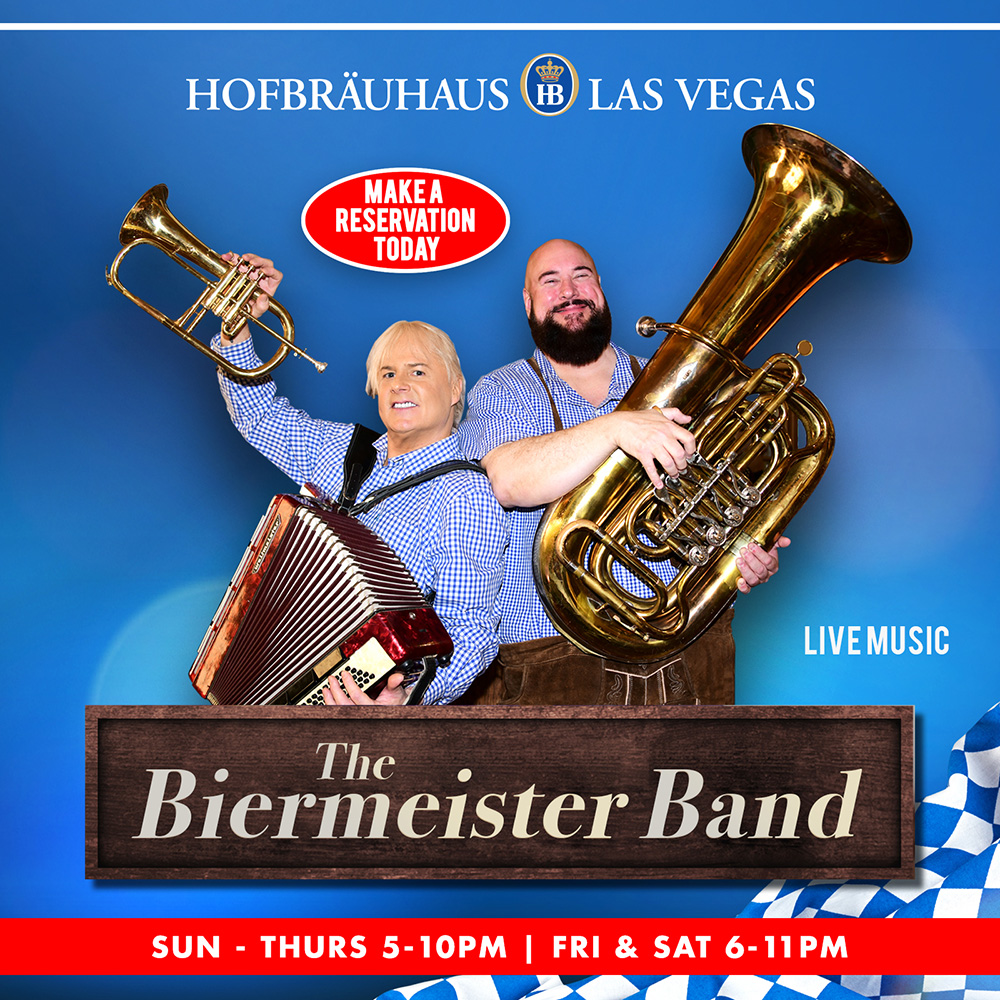 January 1 - December 31Get ready for our LIVE band "The Biermeister Band"! Classic Bavarian tunes will sound through the beer hall every day! The band plays Sun through Thu from 5PM-10PM and Fri & Sat from 6PM-11PM.